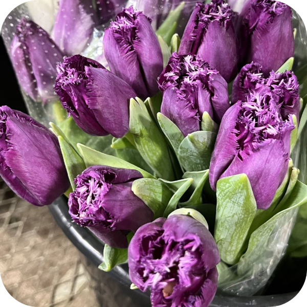 • Forma: Clásica de tulipán con bordes irregulares